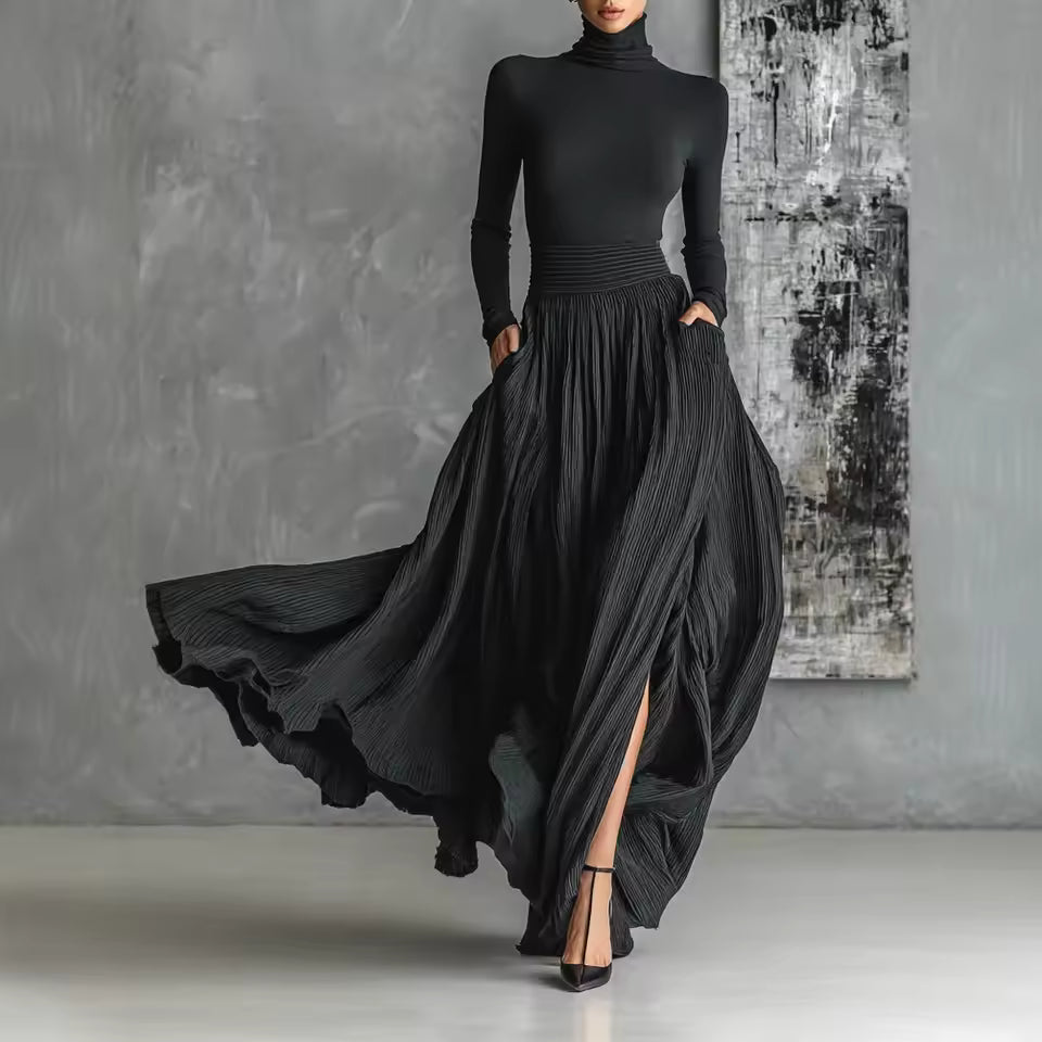 La gonna lunga Aline™ incarna la sofisticatezza, unendo fluidità spettacolare ed eleganza senza tempo. La sua vita alta esalta la tua silhouette, mentre la sua fessura laterale discreta le conferisce un tocco moderno e deciso. Realizzata in un tessuto leggero e fluido, è perfetta per serate, eventi speciali o per un look chic sia di giorno che di notte.